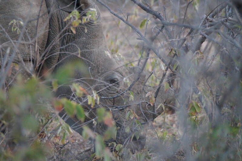 De Neushoorn welke in Zuid-Afrika voorkomt is de witte neushoorn. De "Zwarte" (welke eigenlijk grijs is) neushoorn komt veelal voor in het zuiden en oosten van Afrika. Ondanks de naam zijn beide neushoorns grijs, maar het verschil zit hem in de vorm van hun lippen. De zwarte neushoorn heeft een bovenlip die uitsteekt, terwijl de witte neushoorn brede, vierkante lippen heeft. De lippen bepalen wat zij eten. De "zwarte" neushoorn is een van de meest bedreigde diersoorten, er zijn er nog maar 5.000. Een neushoorn kan niet goed zien, maar zijn uitstekende ruikers. Buiten de paringstijd leven ze alleen en kunnen gevaarlijk zijn, de bereiken met gemak een gewicht van 1000 kg of meer. Echt dichtbij kom je dan ook niet, en met hun grijze kleur zijn ze soms moeilijk zichtbaar. Een goede telelens is dus handig.